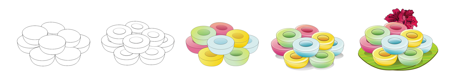 ๕. ขนมชั้น เป็นขนมไทยโบราณที่ใช้ในงานพิธีมงคล โดยมีความเชื่อว่าจะต้องหยอดขนมให้ได้ 9 ชั้น จึงจะเป็นศิริมงคลเจริญก้าวหน้าแก่เจ้าภาพ