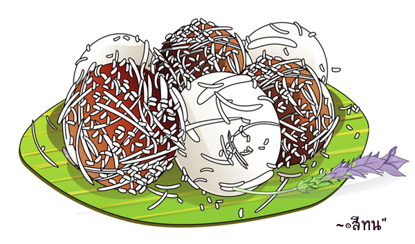 ขนมต้มขาว คู่กับ ขนมต้มแดง เวลารับประทานขนมต้มขาว ต้องรับประทานขนมต้มแดง คู่กันไปด้วย