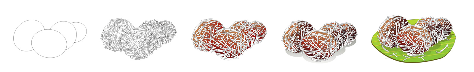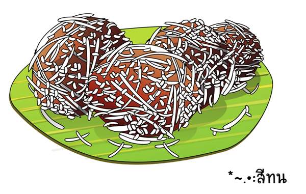 ๑. ขนมต้มแดง เป็นขนมเก่าแก่มีส่วนประกอบของแป้งน้ำตาลและมะพร้าวที่เคี่ยวจนเหนียวเป็นสีแดง