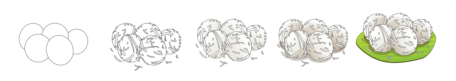 ๒. ขนมต้มขาว ใช้แป้งข้าวเหนียวปั้นเป็นก้อนกลม ใส่ไส้น้ำตาลหม้อ ลงไปต้มให้สุก โรยด้วยมะพร้าวขูด เป็นขนมเก่าแก่เช่นเดียวกับขนมต้มแดง