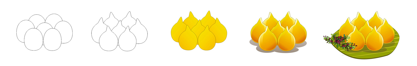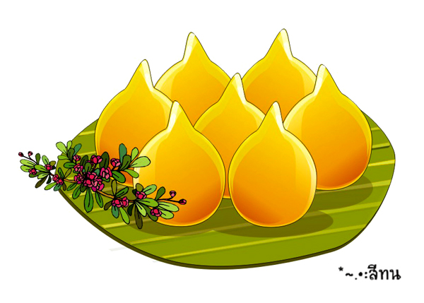 ๗ ทองหยอด ตามประวัติเป็นขนมโปรตุเกส ที่เกาะเกร็ด ตรงคลองลัดทำขายกันเยอะมาก จัดว่าเป็นขนมที่สีสวย